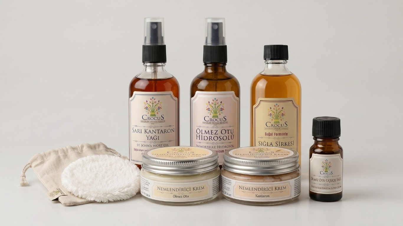 Ölmez Otu (Immortelle) Mucizesi: Hücre yenileyici özelliğiyle bilinen ölmez otu, hem krem hem de hidrosol formuyla cildin kolajen yapısını destekler ve leke oluşumuna karşı koruma sağlar